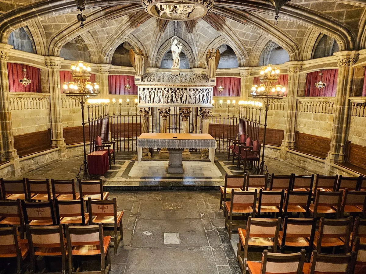Your guide explains the significance of the cloister and its residents-the 13 white geese that symbolize Saint Eulalia’s age at the time of her martyrdom. Surrounded by palm trees, fountains, and Gothic arches, this peaceful courtyard is a highlight of the cathedral.