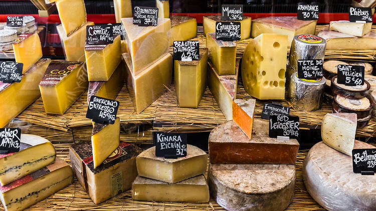 Stalls cover the full range of French daily shopping: fruit and vegetables, meat and poultry, fish and seafood, cheeses, charcuterie, bread and pastries, plus a couple of florists. There are also specialty counters and snack spots offering cuisines such as Italian, North and West African, Portuguese, Middle Eastern and Asian food, making it convenient both for grocery shopping and a quick, inexpensive meal.